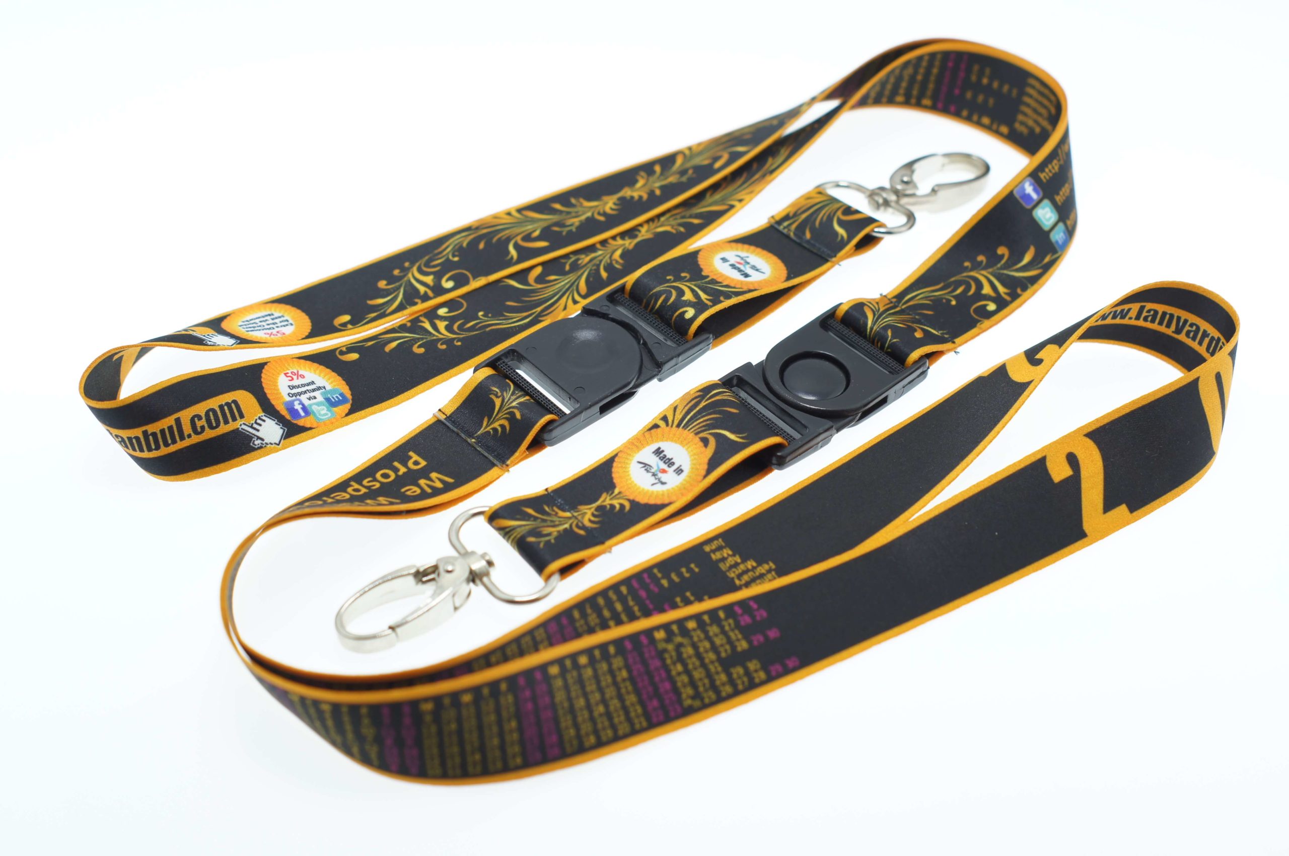 25mm polysatin lanyards with a code104 metal clip and a code304 plastic release buckle. Different artwork can be applied on each side. Perfect PMS match.