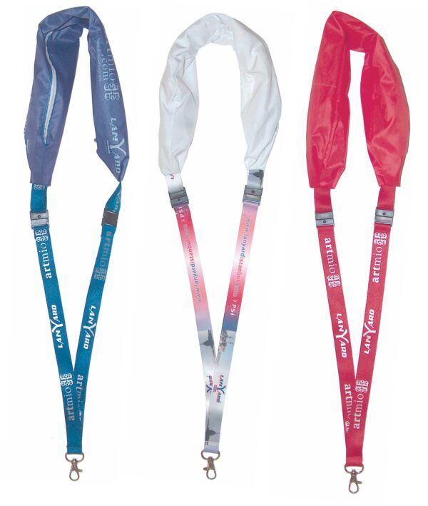 20mm polysatin lanyards with a code104 metal clip and a code401 safety clip and a raincoat cap. Perfect PMS match.
