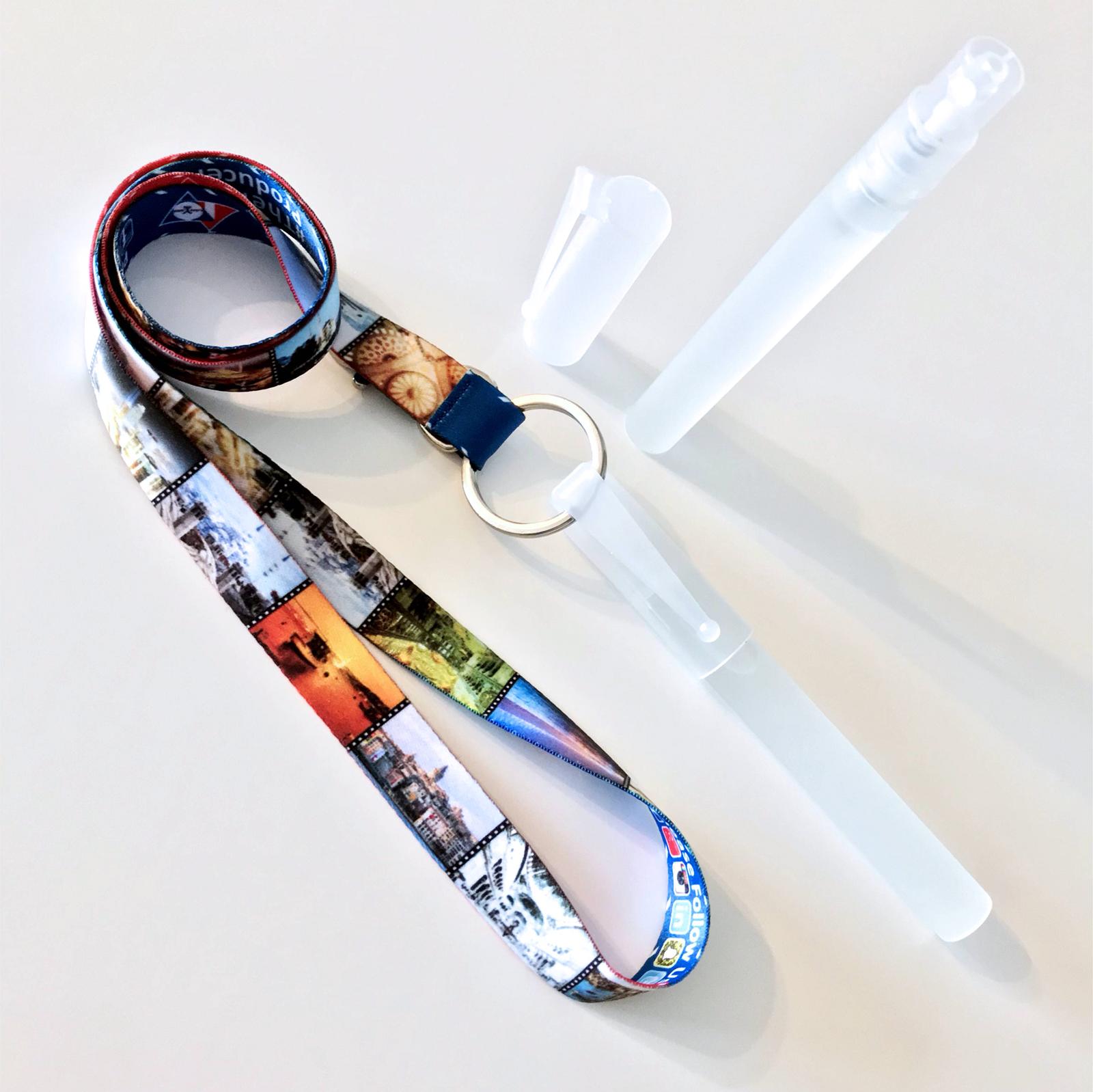 15mm lanyard with a metal ring for a 8ml spray pen sanitizer. Since the sanitizers became a part of our daily life for a while, our lanyards were designed to provide you the fastest access when it’s needed. Easy to carry hanging on your neck.