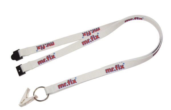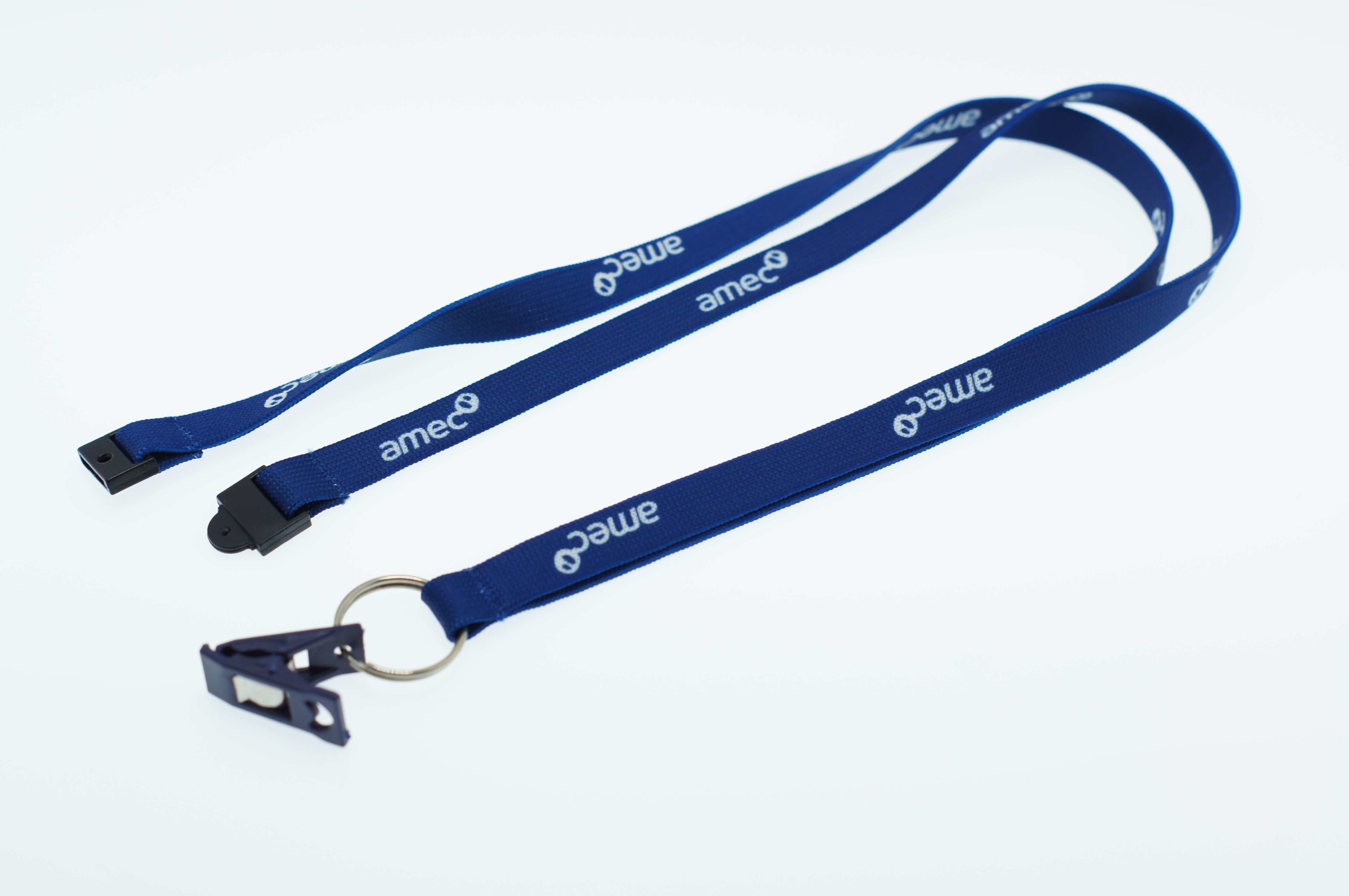 15mm tubular jacquard lanyards with a code101 ring, a code111 plastic clip and a code402 safety clip. Perfect PMS match.