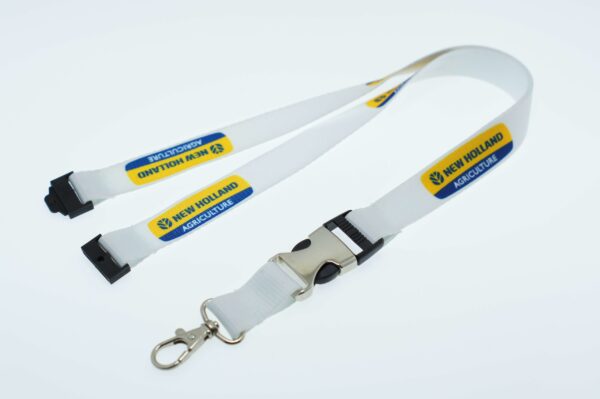 20mm polysatin lanyard with a code101 ring, code104 metal clip and code120 USB holder. Silkscreen imprint with silver or gold option.