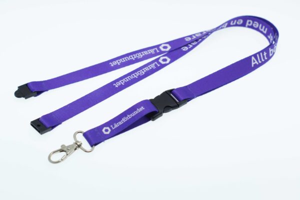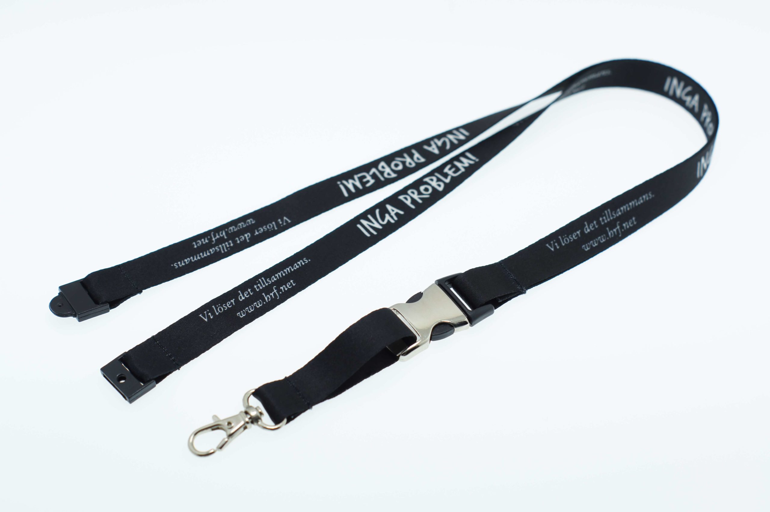 15mm polysatin lanyards with a code104S metal clip, a code304M metal release buckle and a code402 safety clip. Perfect PMS match.