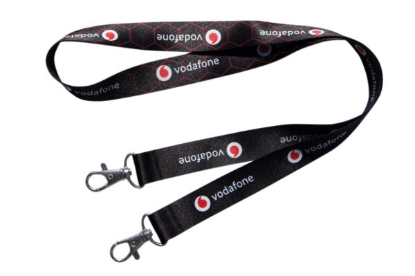 20mm polysatin lanyard with two code104 metal clips. Perfect PMS match.