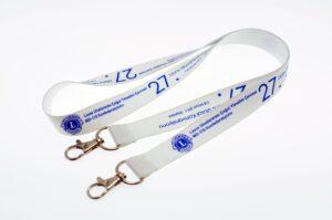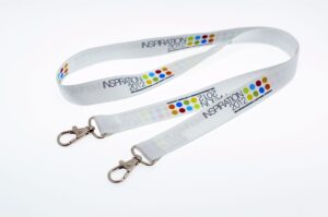 20mm polysatin lanyard with two code104 metal clips. Perfect PMS match.