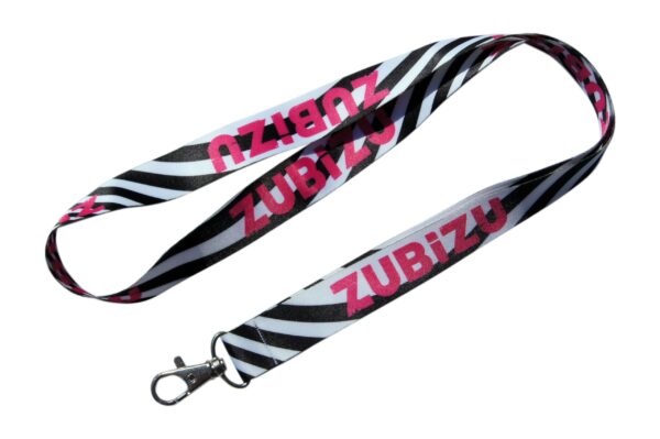 20mm polysatin lanyard with a code104 metal clip. Embossed logo with one colour silkscreen imprint.