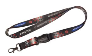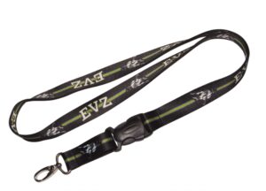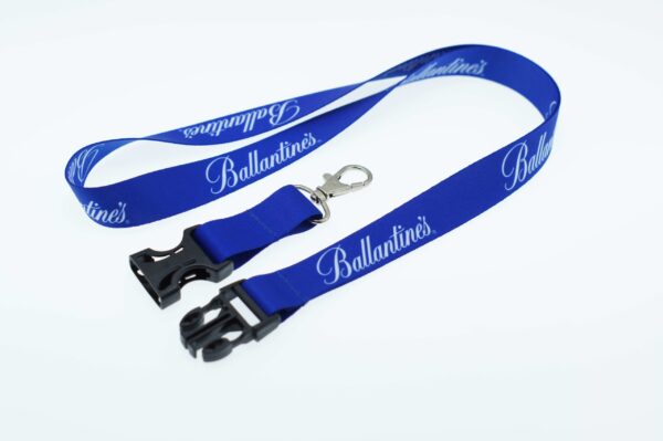 20mm polysatin lanyards with a code104 metal clip and a code304D plastic release buckle. Perfect PMS match.