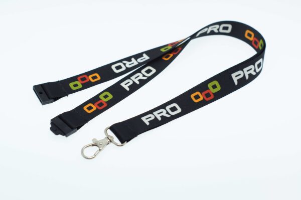 20mm polysatin lanyards with a code104 metal clip, a code304 plastic release buckle and a code401 safety clip. Perfect PMS match..