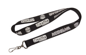 20mm polysatin lanyards with a code104 clip, and an elastic pocket for mobile phones. Perfect PMS match.