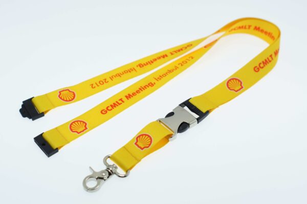 20mm polysatin lanyards with a code104LV metal clip, a code304M metal release buckle and a code401 safety clip. Perfect PMS match.