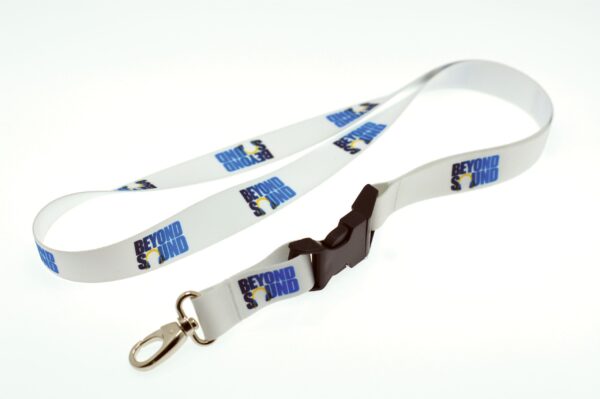 20mm polysatin lanyards with a code104M metal clip and a code304DB plastic release buckle. Perfect PMS match.
