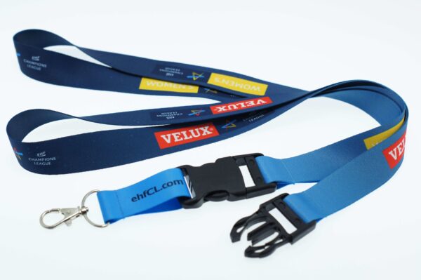 25mm polysatin lanyards with a code104 metal clip and a code304R plastic release buckle. Perfect PMS match.