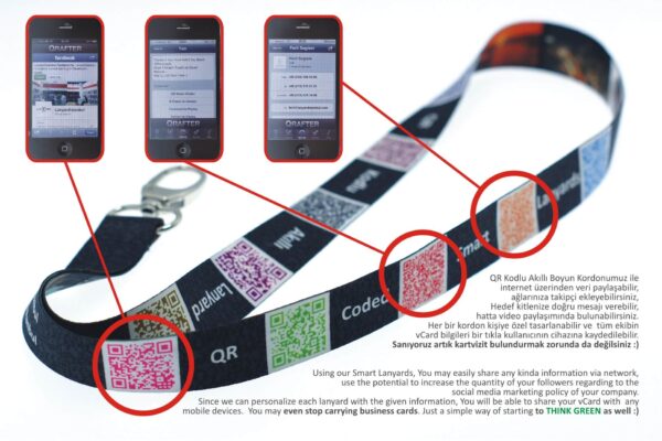 Lanyard Istanbul Team is proud to be presenting new project of the season: QR Coded Smart Lanyards. When it’s about social media marketing, you already know how fast the sector is growing with a high momentum day by day. Since today’s motto is interactivity via internet, we think that QR codes will be a revolutional move in lanyard business. Using our QR Coded Smart Lanyards, some of the advantages and opportunities are listed below:
