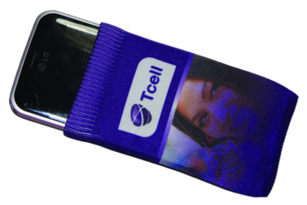 Elastic embroidery mobile covers with logo or photographical imprint option. Can be combined with a lanyard as well.