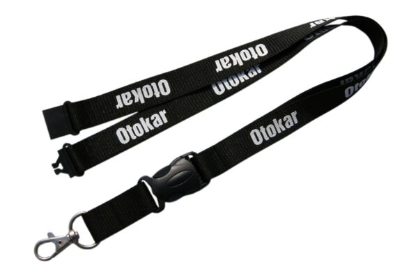 20mm grosgrain lanyards with a code104 metal clip, a code304 plastic release buckle and a code401 safety clip. Embossed logo with one colour silkscreen imprint.